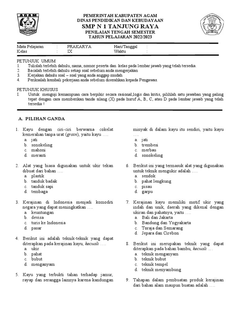 Artikel ini hadir untuk membantu Anda mempersiapkan diri menghadapi PTS Prakarya semester 2 kelas 8. Kami akan mengulas secara komprehensif berbagai topik yang sering diujikan, disertai dengan contoh soal pilihan ganda dan esai yang relevan, lengkap dengan pembahasan mendalam. Dengan memahami contoh-contoh soal ini, Anda diharapkan dapat lebih percaya diri dan meraih hasil terbaik dalam PTS.
