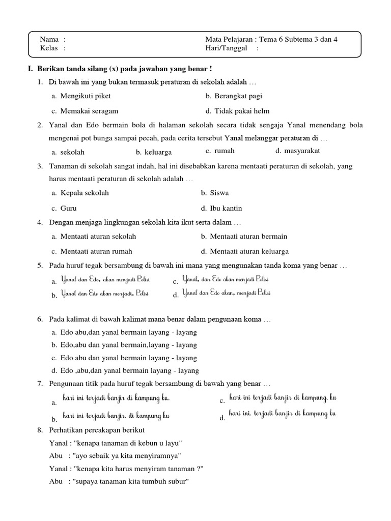 Pendidikan di jenjang Sekolah Dasar (SD) memiliki peran fundamental dalam membentuk karakter dan pengetahuan dasar anak. Kurikulum yang dirancang dengan cermat, seperti yang terdapat pada buku tematik kelas 2, senantiasa berupaya menyajikan materi pembelajaran yang tidak hanya informatif, tetapi juga menarik dan relevan dengan dunia anak. Tema 2, yang berfokus pada "Permenaku dalam Keseharian" dan Subtema 3 serta 4 yang mendalaminya, menjadi salah satu contoh bagaimana pembelajaran dapat disajikan secara menyenangkan melalui berbagai metode, salah satunya adalah soal bergambar.